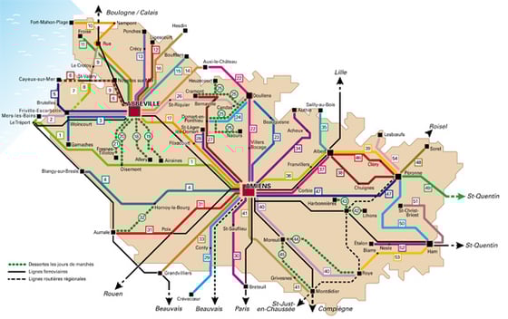 Le Conseil Général de la Somme propose 57 lignes voyageurs pour 600 communes desservies.
